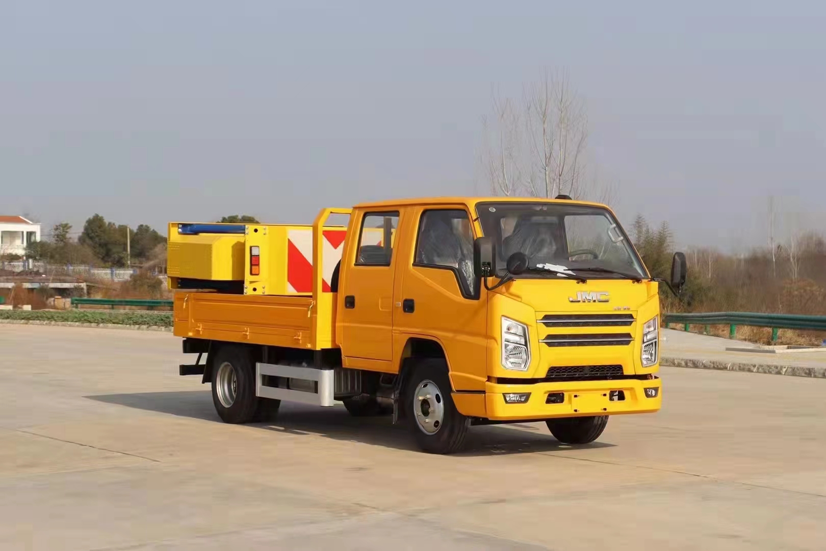 防撞垫的外部升级安装了八根弧形铝管的双段结构。当发生碰撞时,弧形铝管会首先受力变形,吸收后方车辆的巨大冲击能量。能量克服铝管变形率后,缓冲垫会吸收剩余能量,双重防御,确保安全缓冲;一体式电子箭头指示牌,箭头指示可引导左右及禁止通行,减少限位。施工对交通流量的影响,确保安全;驾驶室后部加装吊车,增加整车辅助功能,可供客户在施工时吊起重物。